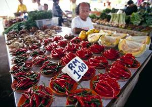 Rice has been cultivated in Malaysia for some 600 years. Malaysians adore their rice; it's served with every meal. Meats and vegetables are considered side dishes. A wide variety of rice is available, from long grain indica, to unpolished brown rice, herbal rice, Basmati rice, and fragrant jasmine rice. A popular Malaysian breakfast is Nasi Goreng, rice mixed with shallots, garlic chillies, beans, and ikan bilis - tiny dried anchovies. Nasi Lemak is a Sunday Brunch favorite: rice with coconut milk, screwpine leaves, salt, shallots, and ginger. Hard-boiled eggs, cucumber, and anchovies in hot sauce compliment this fragrant delight.
