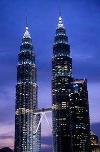 Our spicy breakfast with VJ is at Sampoorna Curry Shop, an Indian "hawker stall" in the heart of Kuala Lumpur (known locally as KL). There's thousands of these sparsely decorated miniscule food stalls in the capital city. Locals take respite from KL's 1.3 million people, buzzing motorcycles, belching buses, sleek Mercedes, and locally manufactured Proton cars. Businessmen wear crisp blue shirts and silk ties, Muslim women are swathed in elegant floral baju kurungs - flowing skirts, blouses and headscarves. Everyone's deal making on their cell phones. KL's success is evident: thousands of banks, textile, jewelry, and electronic shops, designer shopping malls, and luxury hotels crowd the skyline. Mirrored high rises vault thirty, forty, fifty stories with new ones under construction.